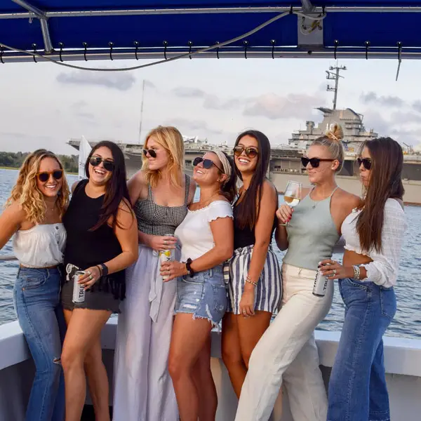 If you have a large group of people that want to get out on the water and learn about the History of Charleston, visit the sites, and not be on a crowded boat with a bunch of strangers then a private party on Ship of Fools, our 30 foot Island Hopper, is the boat for you. With a wide 12 foot beam this boat is stable and roomy. This is the perfect party boat which most often gets booked for bachelorette and bachelor parties but is ideal for any larger group that wants to spend some time on the water. It features a bluetooth sound system so it is easy for guests to connect and play their favorite music and a large swim platform and not to be overlooked there is a Head (Bathroom) on board which comes in handy when relaxing and enjoying some drinks on your tour.
